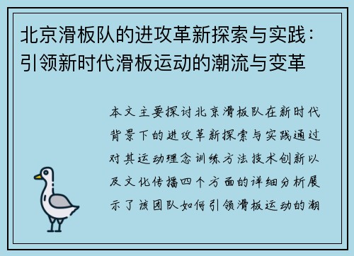 近年来,北京足球队在技术革新方面积极探索,取得了一系列显著成果。这些变化不仅引发了球迷和媒体的热议,也为球队的未来发展指明了方向。本文将从四个方面详细探讨北京足球队的技术革新,包括战术体系的创新、青训体系的发展、数据分析的应用以及心理素质的提升。同时,文章还将讨论这些技术革新所面临的挑战与应对策略,...