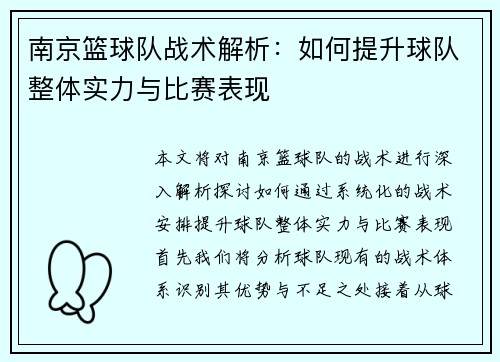 本文旨在深入探讨上海飞盘队在区域防守方面的创新之路及其战术解析。文章将从四个方面进行详细阐述,包括区域防守的基础理念、创新策略的形成与应用、具体战术案例分析以及对未来发展的展望。通过对这些内容的剖析,我们可以更好地理解上海飞盘队在激烈竞争中的优势,也为其他球队提供借鉴和启示。同时,本文也将结合实际比...